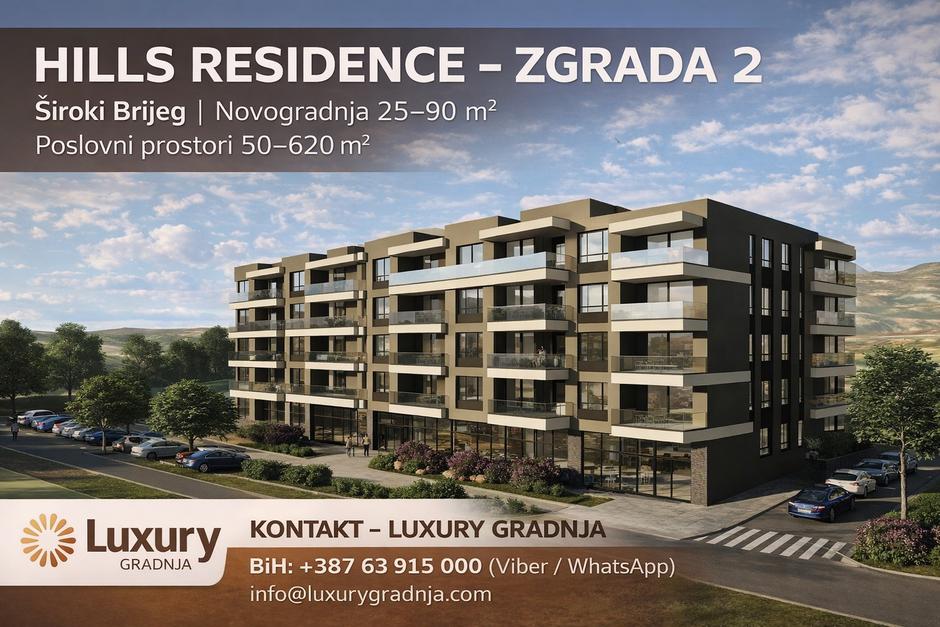 Nakon iznimnog interesa i uspješno započete prve faze projekta, Hills Residence Široki Brijeg ulazi u novu etapu – počinje prodaja stanova u zgradi 2.